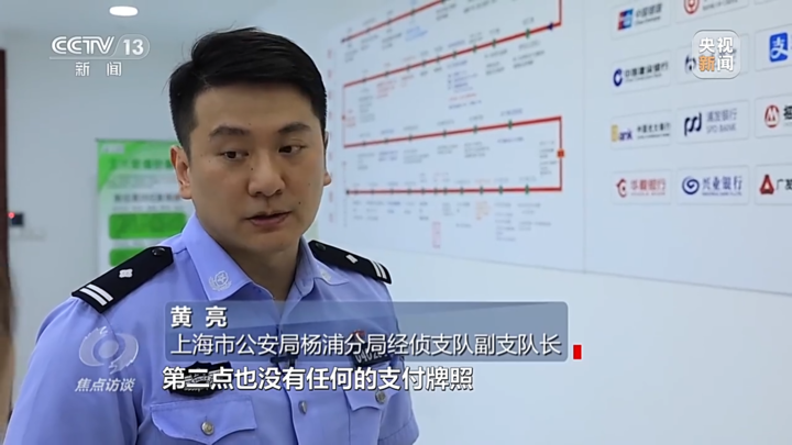 上海市公安局杨浦分局经侦支队副支队长 黄亮:全部都是虚构的,公司一是没有实际的经营项目,第二,没有任何支付牌照,包括写在这里的银行,没有任何一家银行和它有合作协议。